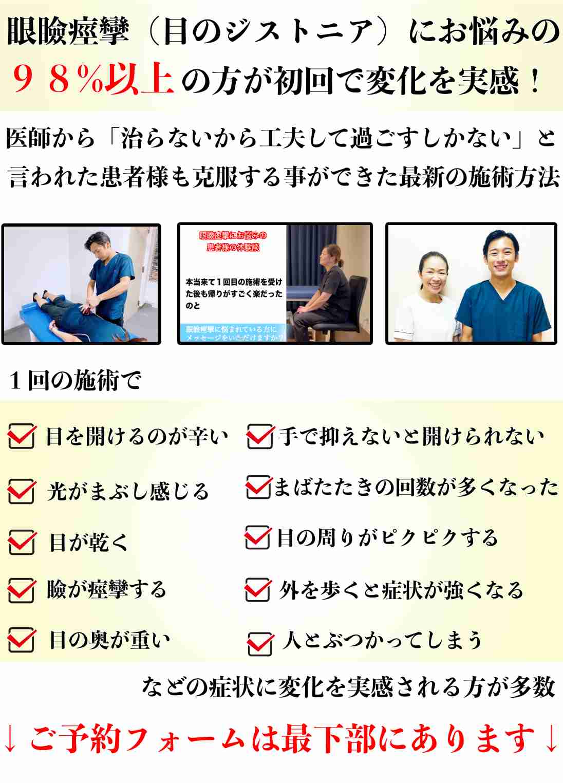 これから病院や他院で治らない眼瞼痙攣の原因と、98%以上の方が初回で変化を実感された当院の施術方法を具体的にお伝えいたします。